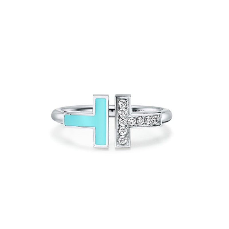 【Tiffany & Co.】ダイヤモンド & ターコイズ ワイヤー リング 18K ホワイトゴールド