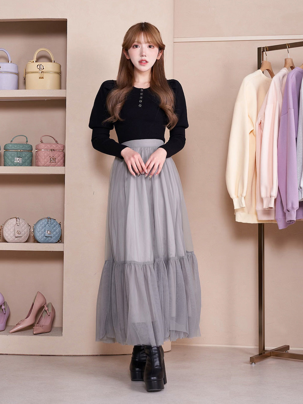 ボリュームチュールフレアスカート