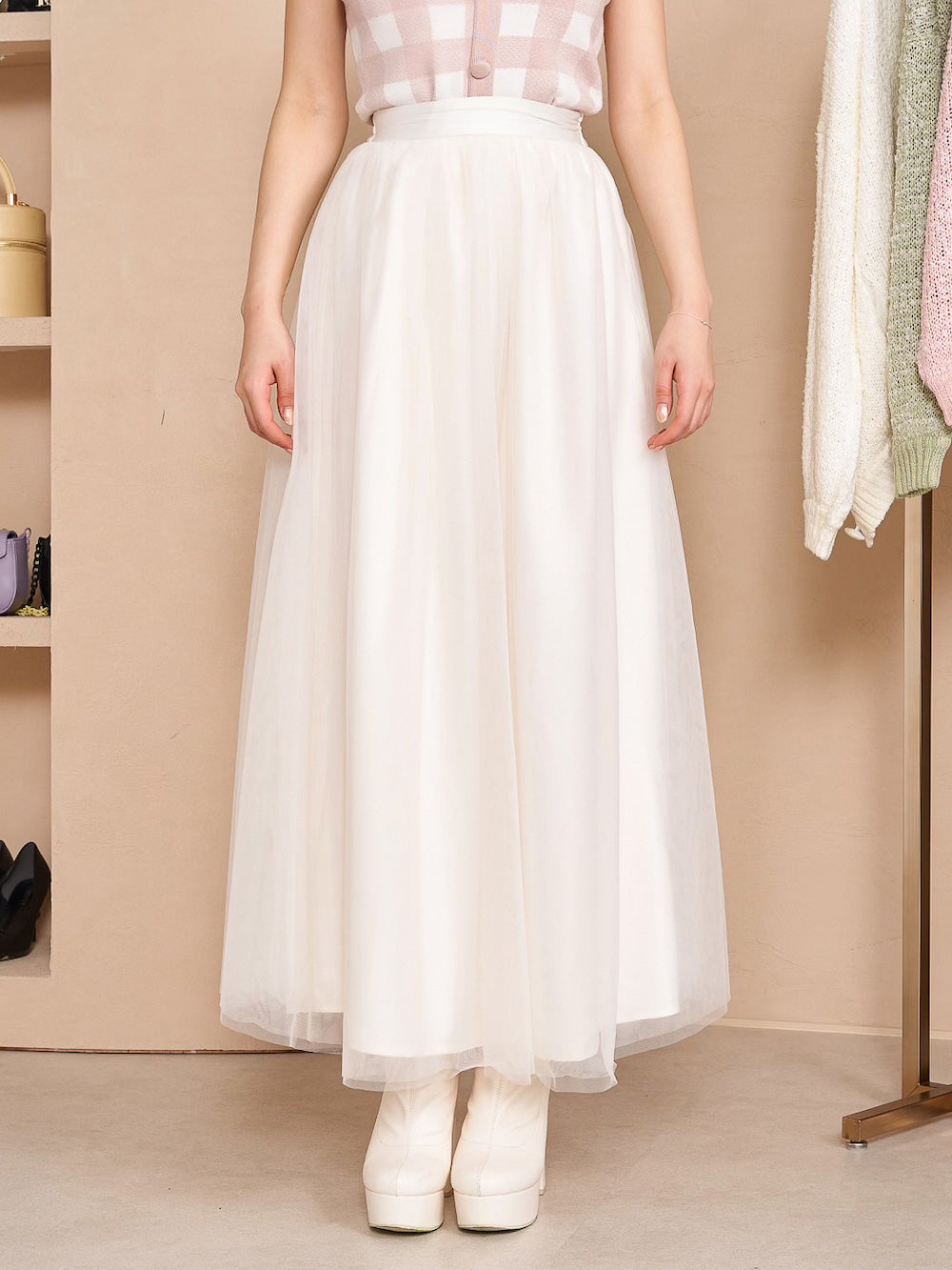 ダブルチュールフレアスカート