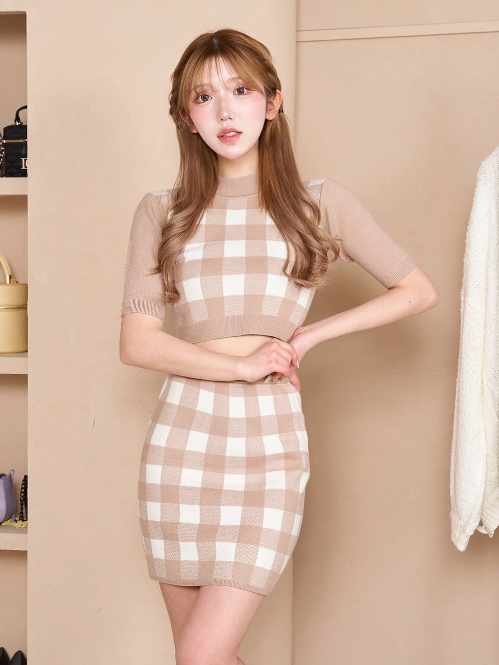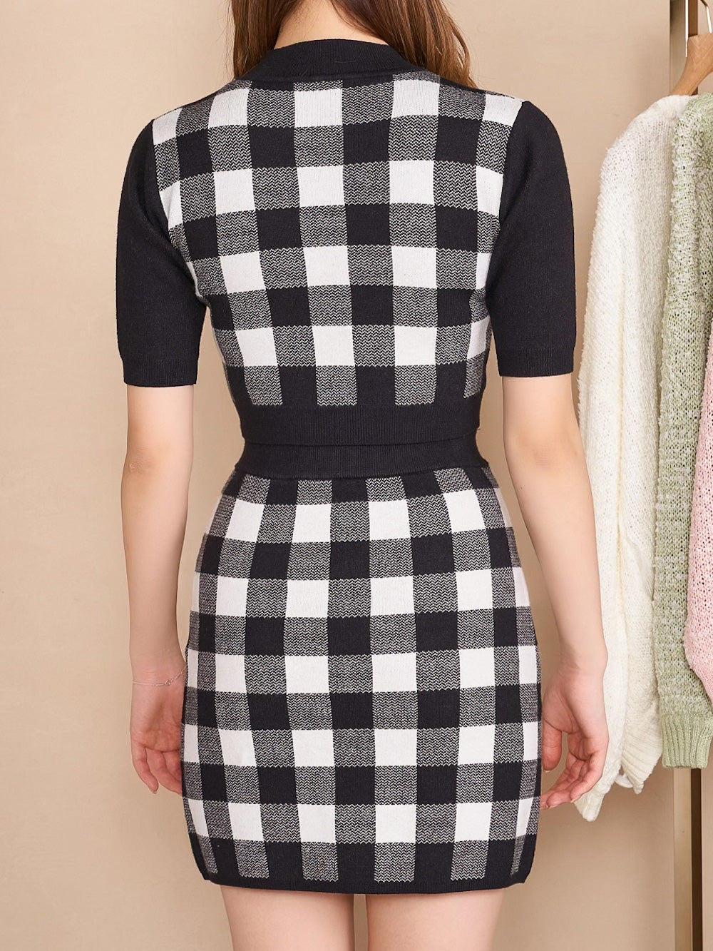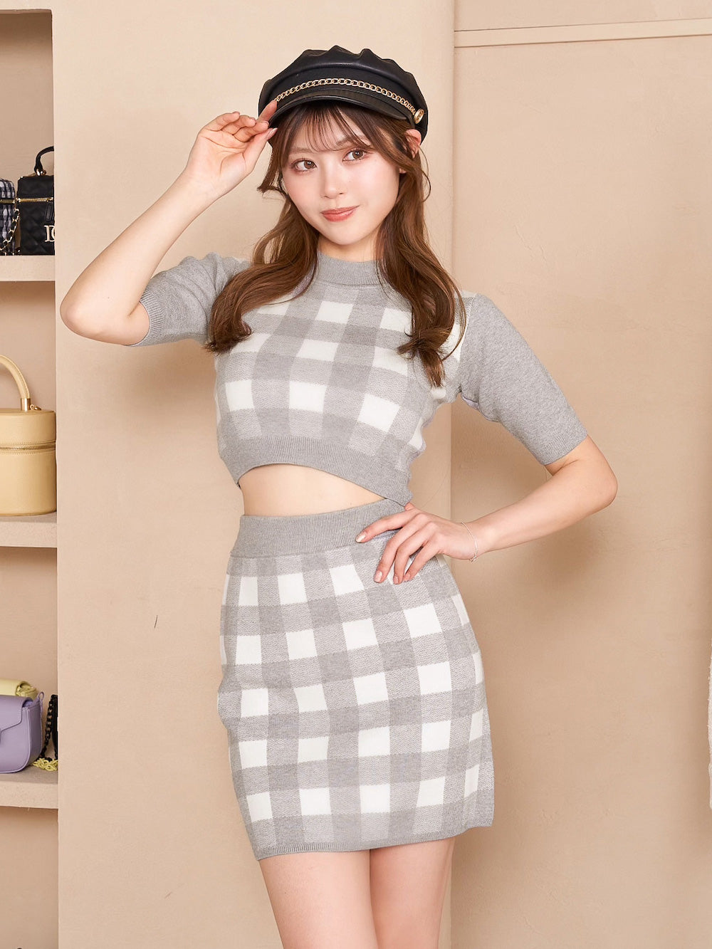 ギンガムチェックニットセットアップ