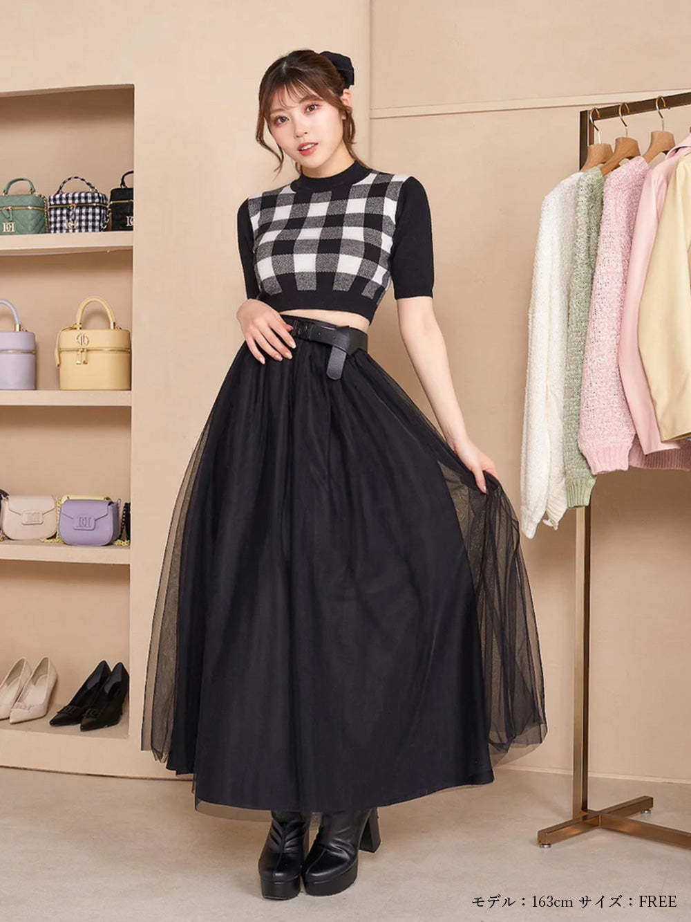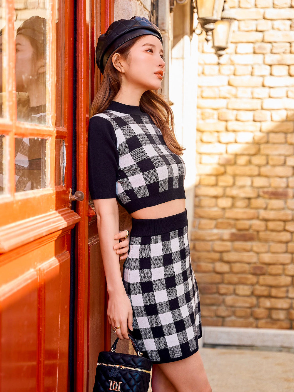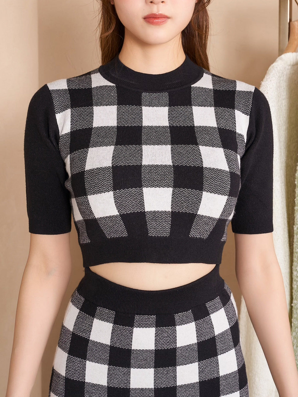 ギンガムチェックニットセットアップ