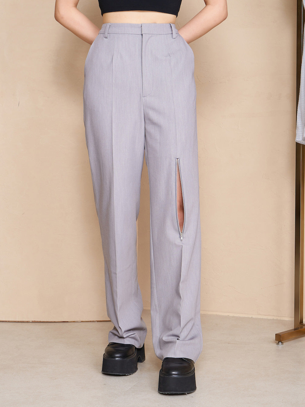 ジッパースラックスパンツ