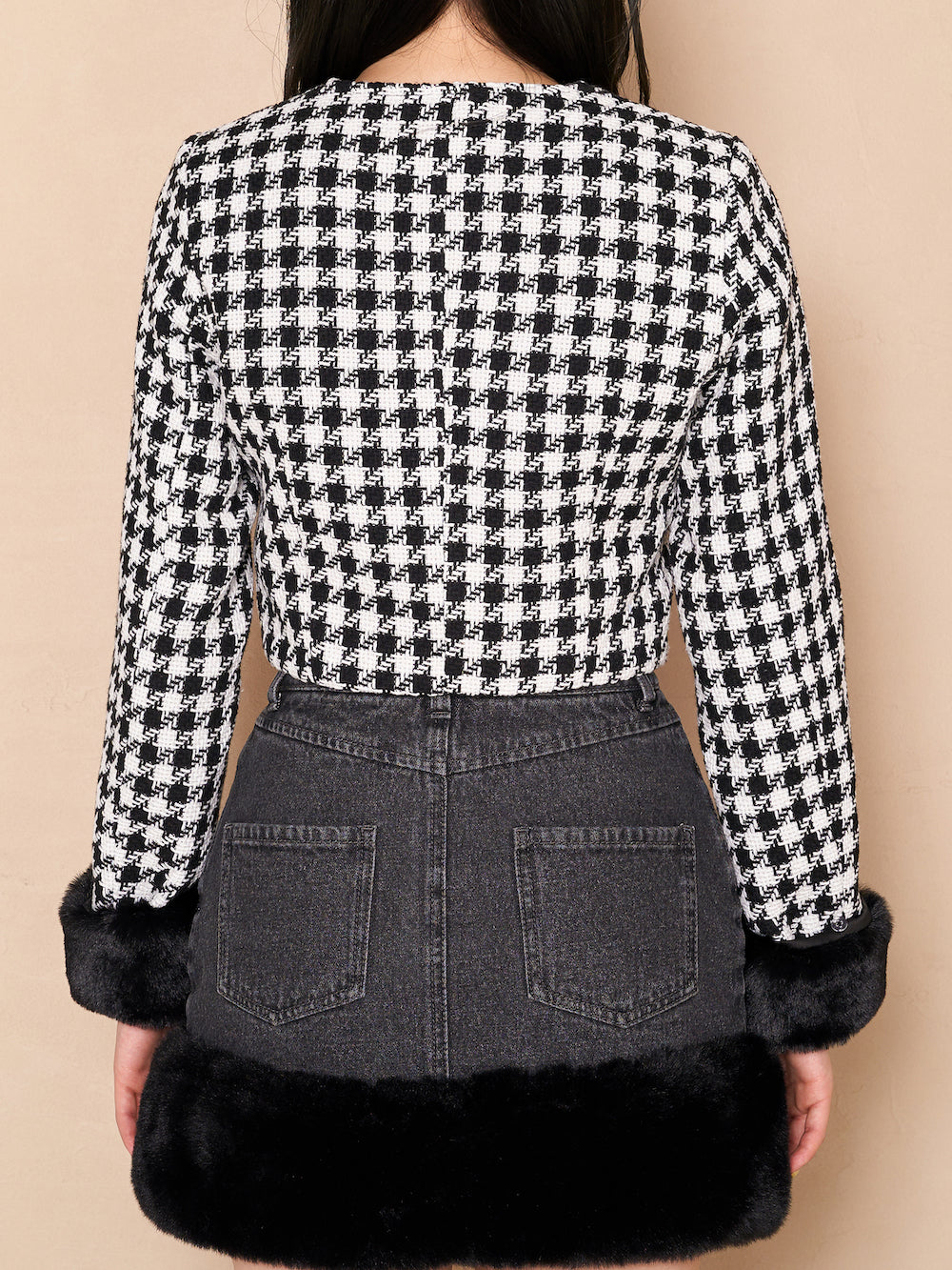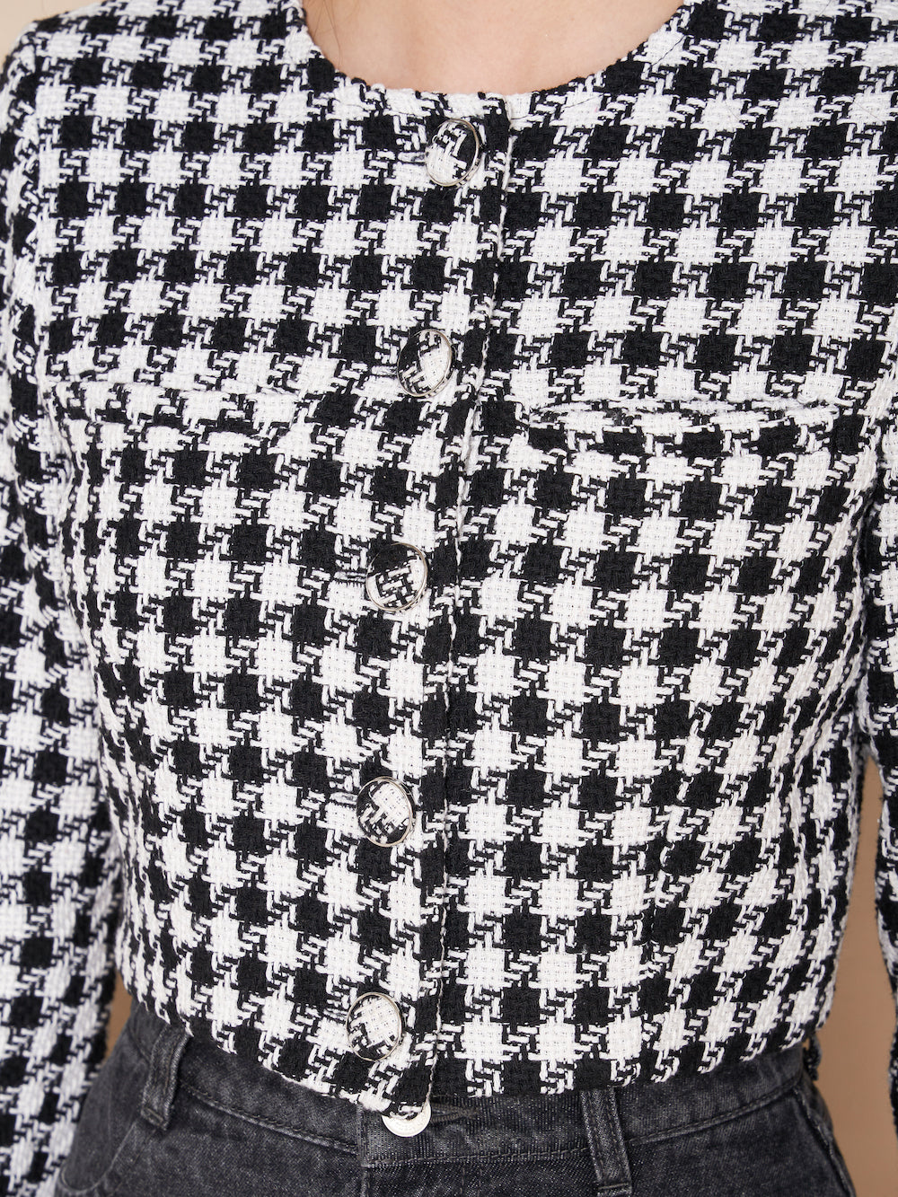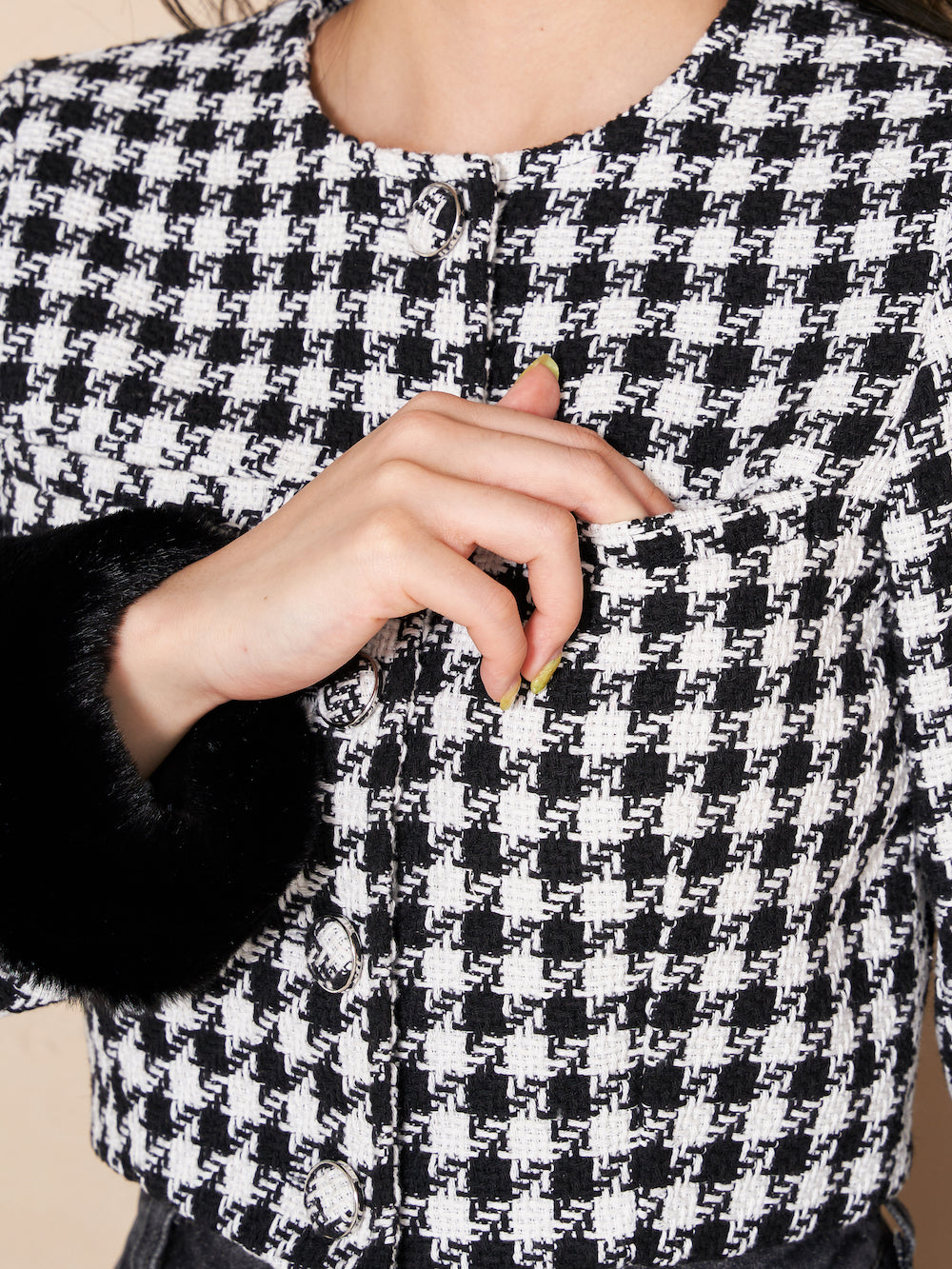 ノーカラーチェックツイードジャケット