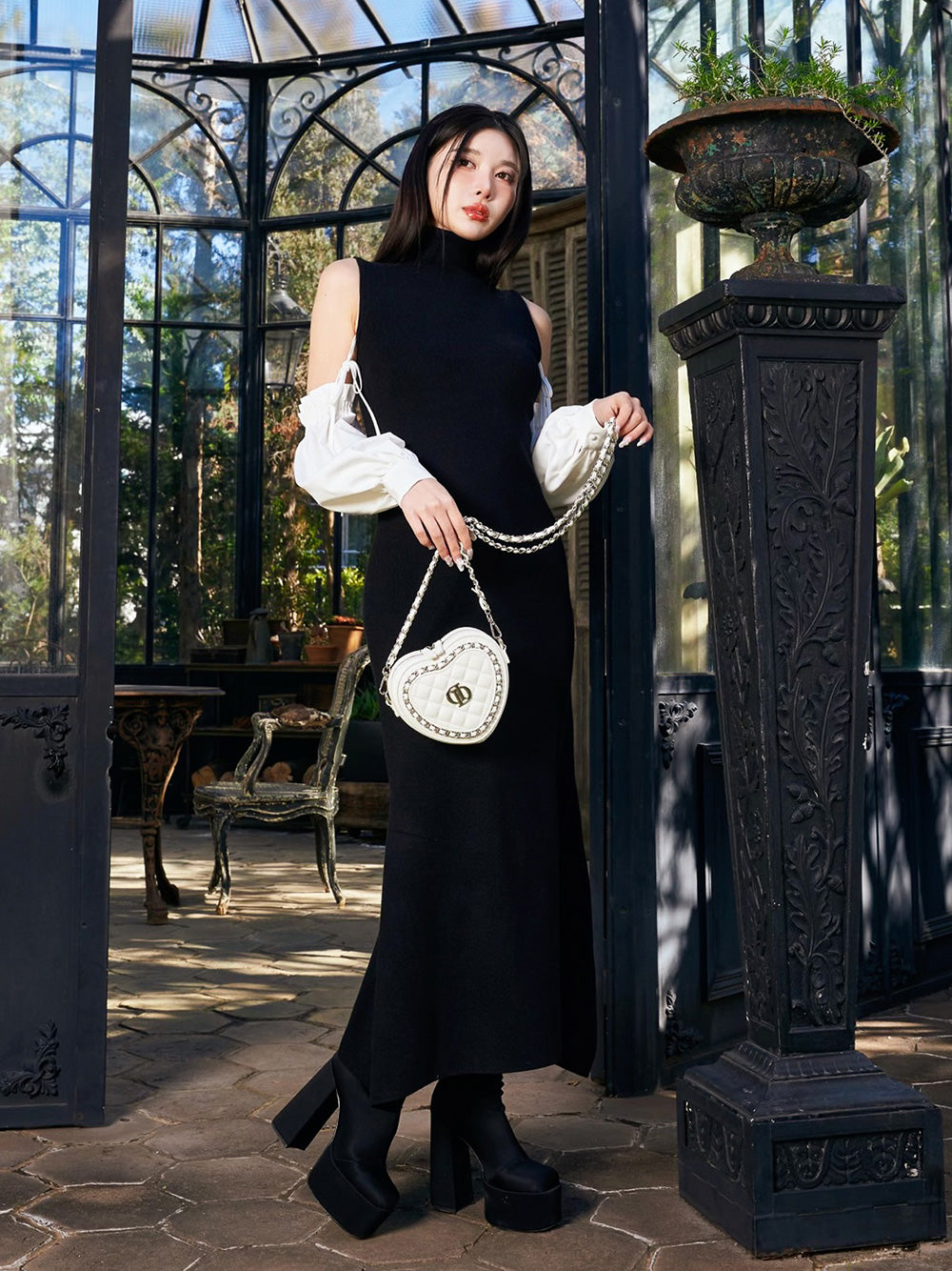 フロントのロゴとシルバーチェーンがコーデに大人っぽさと上品さをプラスしてくれること間違いなしで、